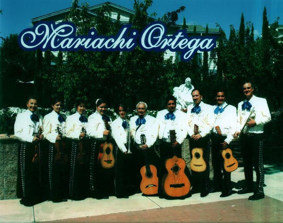 MARIACHI ORTEGA is a group of nine dedicated musicians. Featuring two trumpets, four violins, one guitar, and one vihuela, the group has a full traditional sound.